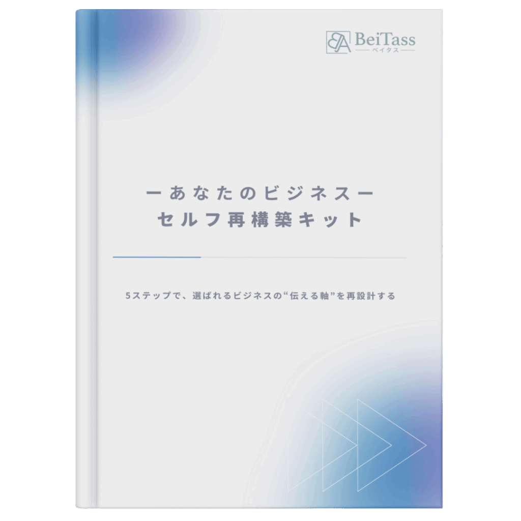 そんなお悩みを持つ事業者の方へ、“選ばれる仕組み”を整えるためのセルフ再構築キット(無料PDF)をご用意しました。